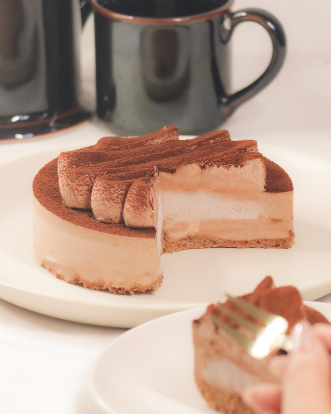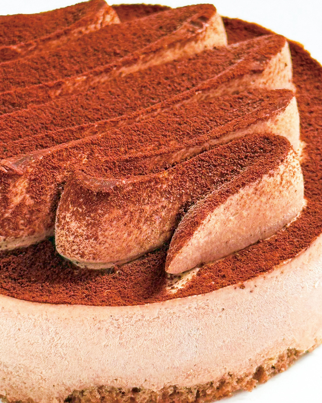 濃厚なチョコレートを贅沢に使い、ゆっくりと時間をかけてムースにしました。とろける食感の奥から広がる、上品でコク深いカカオの香り。クリームの やさしい甘みが余韻を包みこみます。